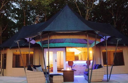 With furnishings this opulent, you'd almost never know you were in the heart of the great outdoors. Nestled into the trees with a million-dollar mountain view, this luxury safari-inspired site puts the glamour in glamping. We've thought of everything so you can enjoy a royal excursion with all the modern conveniences you could need or want. You can have it all with lightning-fast Wi-Fi, lavish bedding, hardwood floors, and elegant furnishings. Secluded and protected, this high-end destination experience has everything you need to make memories that will last a lifetime.