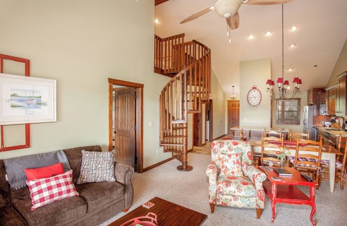 2-Bedroom Luxury Lakefront with Loft Condo Building 15 Unit 11: Maximum Occupancy 8, Upper Level with Vaulted Ceilings, Accessible via 1 Flight of Stairs, Shared Patio Area with Tables & Chairs and