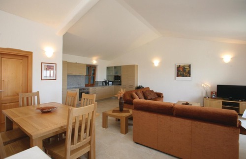 This attractive and modern two-storey apartment is situated in the small village of Bibali, near the town of Buje. Equipped with modern and comfortable furniture, this place is ideal for those who not only want to rest and relax, but also seek something special on holiday. The apartment is located in a villa with four other apartments that are all rented out. The bedrooms are on the ground floor, while the kitchen, living and dining room are on the upper floor. The outdoor pool located in the shared garden provides fun and relaxation. The beautiful terrace offers a good view of Buje. The famous jazz festival is held in Groznjan during summer. Please note that: Bed linen and towels are included in the room rate. Consumption costs are included in the room rate. Outdoor pool on site shared with other guests is open May - end September. - Free parking on site - Pool open May - end September - Shared outdoor swimming pool - Consumption costs incl. - Air conditioning cold/hot - Bedlinen incl towels (included) - Final cleaning (included)