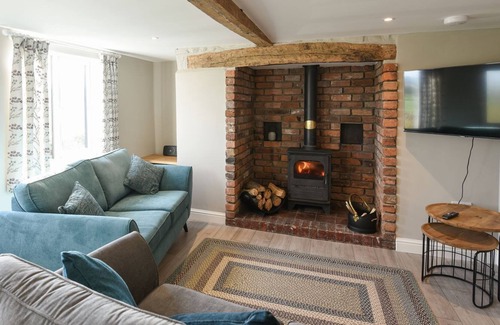 Bathroom: With bath, shower cubicle, toilet and heated towel rail.. Oil central heating, electricity, bed linen, towels, Wi-Fi and logs for wood burner included. Travel cot and highchair. Welcome pack. . Garden with summerhouse, sitting-out area and garden furniture. 1 small dog welcome. Private parking for 3 cars. No smoking. . School House sleeps five guests, though there is ample room for entertaining guests both inside and outside. Ideally located just over 7 miles from Welshpool, School House is a charming and comfortable, three-bedroom cottage that is ideal for family, friends or other groups looking to spend an unforgettable time in a stunning rural location.