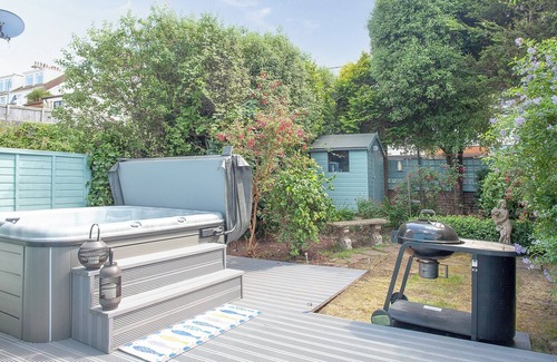 Shower Room: Walk-In Shower, Heated Towel Rail, Toilet. Gas central heating, electricity, bed linen, towels and Wi-Fi included. Travel cot, highchair and stairgate. Welcome pack. Enclosed garden with sitting-out area, garden furniture and barbecue. Hot tub (private). Private parking for 1 car; additional on road parking; public car park, at cost. No smoking.. As you enter the recently renovated Harbour Retreat, you find yourself in the downstairs hallway. The fully equipped kitchen is straight ahead and the open bright and airy living/dining area is to your right. The living/dining area leads out onto the pleasant enclosed rear garden via a sliding door, with decked area, hot tub and BBQ as well as part lawn with shrubs; a great area to sit out and enjoy the last of the sun after a long day at the beach! Upstairs is the family walk-in shower room and two bedrooms. One of the bedrooms benefits from a kingsize bed, the second bedroom is a double room but also has a pull out single bed, handy for if friends come to stay. The third bedroom contains bunk beds and is a great children’s room.