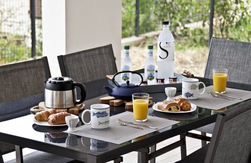 The living room consists of a living / dining room with a sofa 4 places, a coffee table, a LED TV flat screen of 102 cm, a livebox with Orange TV (Channels free of charge including foreign news channels), 10 Mega Internet access and free WI-FI and a dining table sized to accommodate 6 people comfortably.