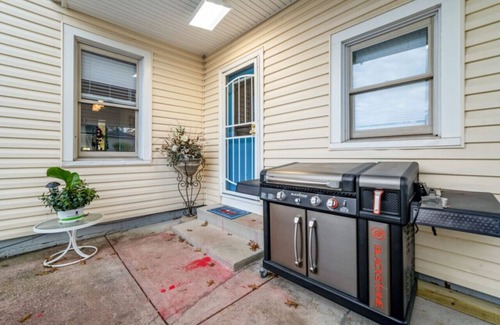 Your family will be close to everything while staying at this 3-bedroom cottage in a safe, family-friendly neighborhood. Located on Cleveland's east side near the I-271 expressway so you're just minutes from downtown Cleveland. There are three bedrooms (a double and two queens), a full bath stocked with towels and personal care products, a full kitchen with modern stainless appliances, a living room with Smart TV, full dining room and on-site laundry facilities. You also get central AC, high-speed WiFi, and garage parking space.