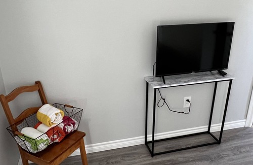This tastefully built cottage has an open concept main area with lots of windows and glass sliding doors to allow you to take in the beautiful water view. The kitchen is fully equipped with everything you should need to cook meals. The master bedroom features a queen bed and a Smart TV for Netflix and Amazon Prime. The second bedroom also has a queen bed and a Smart TV. The third bedroom has bunks beds – a full on the bottom to sleep two and a twin on the top. Travelling with little ones? Included is a highchair and diaper genie. A queen-sized air mattress is also provided for extra guests to sleep comfortably. A small desk is in the main area as well, perfect for some remote work while on vacation.