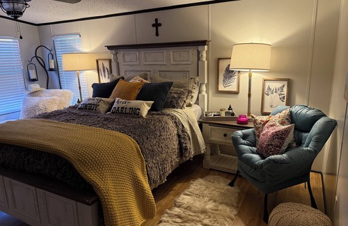 Your Keithville adventure begins at this marvelous 3-bedroom mobile home. With 2 queen beds and 2 twin XL bed, this cozy retreat offers a wonderful space for guests to relax. The property features amenities like AC, a washing machine, and WiFi, ensuring a comfortable stay. Guests can unwind by fishing in 4 stocked ponds, or hiking trails. Enjoying the view from the very large outdoor living area is also amazing! Basket ball court also is a fun way to let off some steam, Fireplace in living room and plenty of outdoor heaters! Bring your horse we got a stall we can’t rent also!