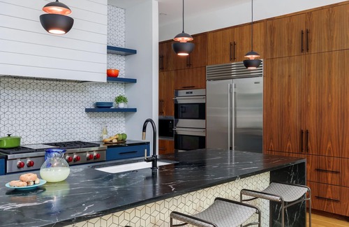 Prepare culinary delights in the fully equipped, gourmet kitchen featuring modern appliances and ample counter space with beautiful pops of color throughout. Enjoy your meals together at the dining table, or opt for a casual brunch on the deck overlooking the lush backyard. Need extra sleeping space? The open area upstairs features a pull-out couch for additional guests.