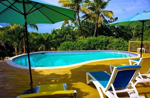 The Villa is located on a private one acre lot in the Leeward area of Provindenciales. Leeward is a quiet community with security at night at the gate. This 5 bedroom Villa is nearly 2600 sq/ft. It has a large deck, covered outside sitting area, and a private pool ideal for children. World Famous Grace Bay beach is only a minute away. The beach has beautiful soft white sand and nice for children. The hotel district is a mile to the west and a walk to the east will take you to a very wide and quiet residential beaches that will make you feel like you're the only one on them. Warm reef protected oceans, miles of beautiful beach to explore.