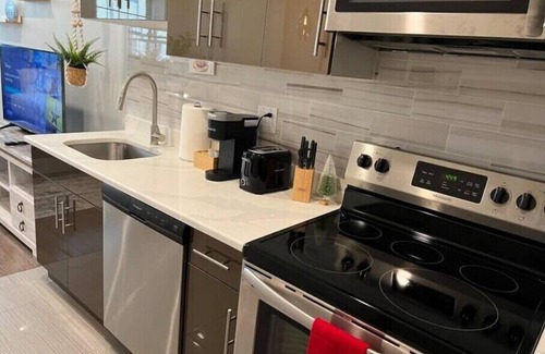 coffee maker and tea bag to keep you energized throughout the day, Fresh towels and bathroom essentials ,Common area offering a 50” smart TV ( connect Netflix,HBO , Disney or Hulu )