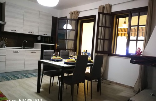 The house is located within a "Marina delle Nereidi" village, loc. Terra Mala 20 minutes from Cagliari and as many from Villasimius, surrounded by Mediterranean scrub offers a small rocky beach with crystal clear sea with a perfect backdrop for snorkeling. Type 50sqm three-room apartment, accessed from the front terrace, with private garden, equipped with table and chairs with a BBQ to prepare and enjoy meals in the open air enjoying the view. Upon entering, we are immediately in the living room - kitchen with pine / sea view and has a sofa and large internal fireplace, a bedroom with single beds with pine / sea view window, dressing room with wall shelving, a bedroom, a bathroom with box shower. In the back of the house there is a very comfortable internal courtyard also used as a laundry room and which communicates with both the bathroom and the master bedroom.