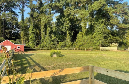 This charming and spacious house is the perfect home base for your trip to Manteo. With 3 cozy bedrooms—featuring 1 queen bed, 2 bunk beds, 2 twin beds, and 1 full bed—along with 2 full baths, it offers plenty of space for families or groups. Enjoy modern comforts including heating, air conditioning, a full kitchen, WiFi, and a washing machine and dryer. The tranquil setting is ideal for both short and long stays. Pet-friendly (see pet policy), this home also features a horse paddock, small barn, and fencing, making it perfect for horse families. Plus, it's just a short drive to the beach for added relaxation. The large back deck with a grill is perfect for outdoor dining, and the fenced backyard is great for pets. A garage is also available to store bikes or scooters for your convenience.