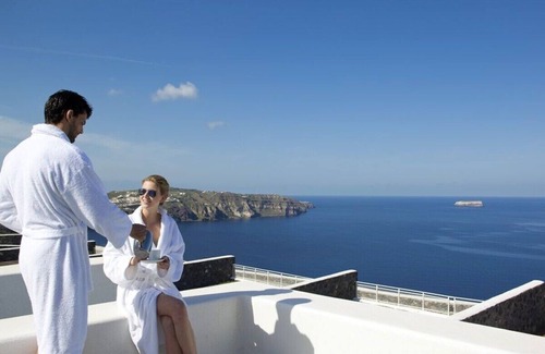 Spacious 3-bedroom villa with private pool, Caldera views, and romantic touches — ideal for families or couples seeking elegance and privacy.