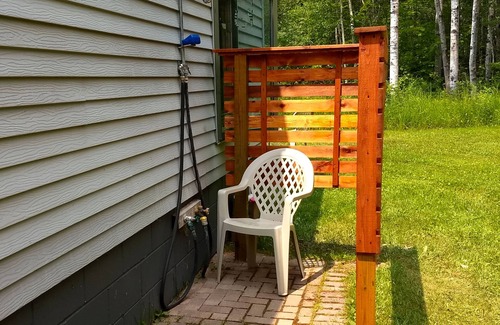 Wake up and you can only see the woods, hear the wind. Have coffee in the comfy interior or on the front deck or back porch. Ride your bikes to Big Bay, swim under the bridge in the lagoon out into the gentle Lake Superior waves. At home, wash the lake off in our outdoor shower, grill, then circle the firepit and watch the sparks join the stars above. Fall into goose-down bedding and dream that your vacation never ends...