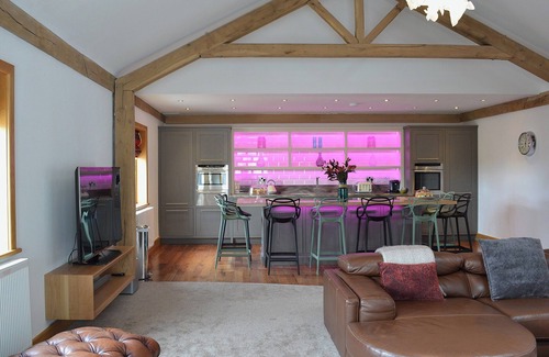 Living area: 58" Freeview Smart TV, DVD Player, Woodburner, French Doors Leading To Garden