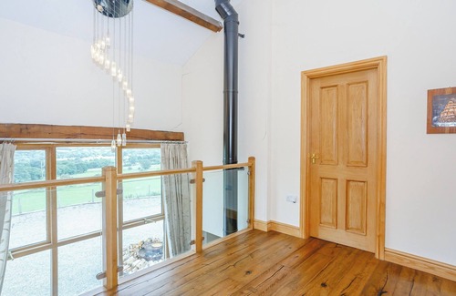 Bathroom: Bath With Shower Attachment, Toilet. Ground source underfloor central heating, electricity, bed linen, towels, Wi-Fi and wood for wood burner and hot tub included. Welcome pack. Enclosed lawned garden with patio, garden furniture, firepit and pizza oven. Wood fired hot tub for 5 (private). 8½ acre grounds with seasonal pond. Bike store. Private parking for 5 cars. No smoking. Please note: There is a seasonal pond in the grounds, 30 yards. The property has a natural water supply from a borehole. Sorry, no hen or stag parties. Families and couples only.. Hidden down a private farm track in the middle of the Forest of Bowland, Boococks Barn offers a truly unique and special stay. Set in 8½ acres of its own land, you’ll feel like the only people in the world when you stay here, with your only neighbours being the local highland cattle, deer and hares lolloping through the meadows. The feeling of being secluded in its own acres is magnified by its self-sufficiency; ground sourced heat warming the two floors on individual room dials, spring water from the private borehole and a Swedish hot tub, fired by locally sourced wood. It’s an ultimate get away from it all. Every aspect of this beautiful barn conversion has been thoughtfully designed to make the most of the scenic surroundings. The 180 degree view from the barn has to seen to be believed and is revealed descending the track to the property. It starts at Whernside in the Yorkshire Dales, followed by the contour of Ingleborough, capped in the southern extreme by Pendle Hill. To the back of the barn a large, light filled kitchen with a dining table in the centre is the perfect focal point to sit and chat over dinner. There is a double bedroom and shower room which is ideally located close to the garden so you can hop in and out of the hot tub. Upstairs, there are a further three bedrooms, two of which are kingsize, plus an en-suite showeroom and a family bathroom. The pièce de résistance is the living room, which takes up the front of the barn with a magnificent two storey window showcasing uninterrupted views over the Ribble Valley and Yorkshire Dales from both floors. The main living area is divided into two by a lavish double sided fireplace creating a bright and open social space and a cosy nook which is perfect for snuggling up with a book. Outside, the owners have installed an eco friendly, Swedish wood fired hot tub nestled in a corner of the garden which is perfectly positioned to make the most of the gorgeous vistas from sunrise through to sunset. You’ll also find a pizza oven and hand built firepit to cosy up next to while you gaze at the stars on a balmy summers evening.