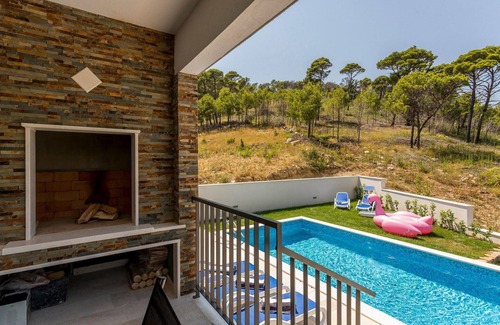 Villa Moroso was built in 2020 in a contemporary style, offers guests 360 m2 of living space, and the total area of the property is 600 m2. It is fully air-conditioned and provides accommodation for a maximum of 10 people, while the optimal number of guests is 8. Guests will be distributed in 4 bedrooms with double beds, and as an additional bed, there are also two additional beds (90x200). Each of the bedrooms has an ensuite bathroom with a shower cabin or bathtub, and each room also has a balcony with seating.