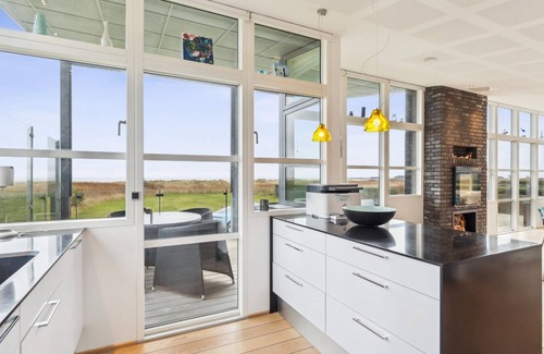 Look forward to your stay in this stylish holiday home. Here you can spend unforgettable days close to the coast. The light-flooded living area with its large panoramic windows offers a marvellous view outside. Relax by the fireplace, take a seat at the dining table or enjoy the modern furnishings in the open-plan living and kitchen area. Use the well-equipped kitchen to prepare your favourite dishes and try the special luxury of the indoor whirlpool, which guarantees you relaxation at all times. The offer is complemented by an activity room with table tennis for socialising.