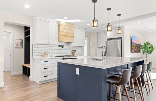 Walk directly into the open kitchen and dining area perfect for enjoying a meal with all of your travel companions! Large kitchen fit for a chef is fully stocked with all cooking essentials you'll need to prepare a meal. Comfy & stylish living area with large TV leads directly into the gorgeous backyard! 4 bedrooms & 3 bathrooms provide ample space for you & privacy when needed! Washer & dryer in home for any laundry needs during your stay.