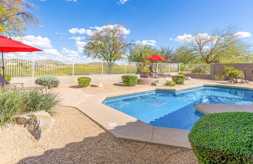 Lovely Rambler with 4 large bedrooms all featuring brand new organic Nectar beds. Each room also features a smart TV. You will feel right at home in the comfortable open family room with plenty of seating. The large kitchen is well equipped. The focal point will be the large Private Pool. Which can be heated at a charge of $50.00 per day. The back yard is very private with covered patio with lots of seating. Hiking trails within 5 minutes. 2 golf courses within 10 minutes.