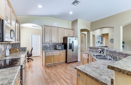 From spring training to animal encounters, this 3-bedroom, 2-bath Surprise vacation rental puts you near everything on your itinerary! After settling in, whip up a homemade meal in the open-concept kitchen and enjoy it on the patio. When it's time to explore, grab your favorite baseball jersey and head to Surprise Stadium or spend a day at Wildlife World Zoo, Aquarium & Safari Park. You decide!