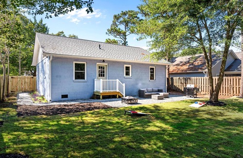 4 min to beach, fully fenced yard + games, pet and kid friendly! | House in Oak Island