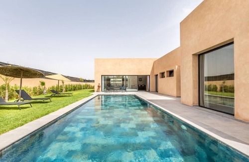 At only 10 minutes from Marrakech's center, this villa offers you the perfect spot to stay in when in Morocco. Provided with a decent green space and a beautiful swimming pool to refresh your stay.