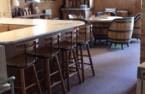 The great room features a wood burning fireplace (not for usage in summer), 42” flatscreen TV and DVD/blueray player (satellite tv with limited channels), a sofa (sleeper), a love seat, and 2 comfortable upholstered chairs. The adjacent dining/game area includes a table and chairs with seating for 5, and the kitchen has an eating bar with seating for 7. The bonus seating area features a 32” flatscreen TV, DVD/blueray player, and X-Box game console and the 2nd sleeper sofa. NEW HVAC 2018.