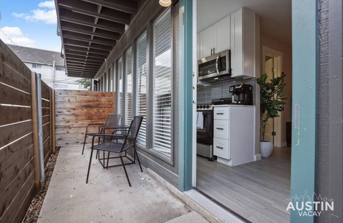 Scooters (Lime & Bird) as well as Lyft and Uber are the best ways to get around Austin, especially this close to everything. However, there are also a lot of public transportation options in this area (see CapMetro`s website).