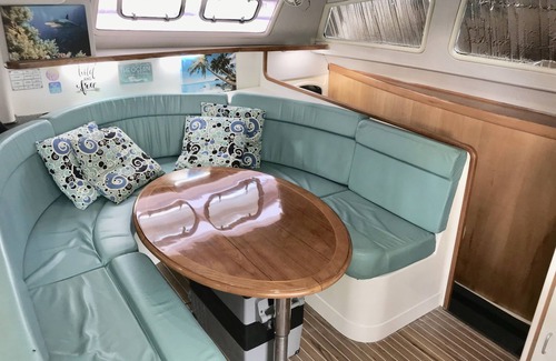 The 3 rooms are spacious enough for 2 guests in each room and each room has their own private bathroom & shower. The salon or living room is spacious and connected to the galley so everyone can be involved when dinner is being cooked. The outdoor cockpit or back patio is very spacious and can be covered or uncovered. The bow of the boat has 2 large trampolines and is wonderful to sit up there with the ocean below you as we are sailing. You have usage of snorkeling equipment, floating chairs and lounges, beach umbrellas, deep drop fishing equipment and trolling rods for fishing, 2 stand up paddle boards, movie projector for outdoor movies at night, popcorn maker, ice cream maker, a 12ft dinghy for exploring the islands etc..to much to list!
