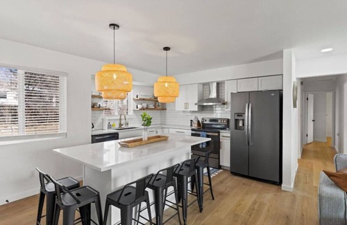 Enjoy a stylish experience at this centrally-located home newly renovated into 3 separate units. Studio apartment with kitchenette, Upper unit has full functioning kitchen, basement unit also has a full functioning kitchen. Total of 6 beds & 2 pull out couches to sleep 16 guests. 4 bathrooms throughout. Enough room for the entire family with ability to have individual spaces. Beautiful Pikes Peak views are amazing at sunset. With main attractions nearby, enjoy all CO has to offer!
