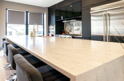 Cook up breakfast, lunch or dinner in the stunning, fully equipped chefs’ kitchen that has everything you could need with quality cookware, high-end stainless steel appliances and a sleek granite island bench. There is a full size fridge/freezer, an oven and cooktop, a built-in microwave, a coffee maker and a dishwasher to handle the day's dishes.