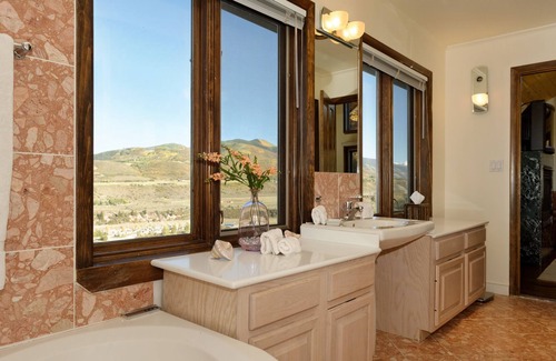 VILLA VALLEY HIGH, on a bluff above the Cozy Point Ranch, a rustic equestrian facility just outside Snowmass Village and close to Aspen, enjoys stunning views of the mountains from all rooms, including views across the valley and all the way to Aspen and to Independence Pass beyond. Our guests will stay in a luxuriously appointed and comfortable home for the cost of a small old condo in Aspen. Our property is just above the traffic light at Highway 82 and the entrance to Snowmass Village, and just a short drive to Aspen. In contrast to Aspen homes, the property has all day sun, and all our rooms are above ground.