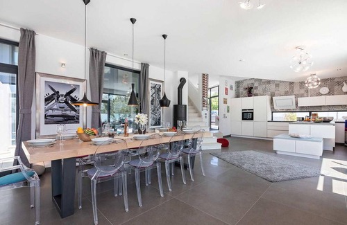 The Birdhouse Villa can accommodate up to 10 people on 380 sqm living space on two air-conditioned floors. The rooms in the house are very spacious so that only the living area is 75 sqm big, and to the feeling of comfort and spaciousness also contribute the 3m high ceiling and 2,4m high inside doors. On the ground floor there is a living area with equipped kitchen, dining table with designer Ghost chairs and three sofas, two double bedrooms, each with private shower/toilet, one of them with bathtub in the room, a separate toilet. On the first floor, there are three double bedrooms, each with private shower/toilet and access to the terrace. Please note this property does not accept youth groups or stag/hen parties. A youth group at this property is one comprised of individuals aged 26or under. Do not book this property if you are a youth group or a stag/hen party, as your booking will be rejected post-booking, which may include on arrival at the property or during your stay and you will not be refunded.