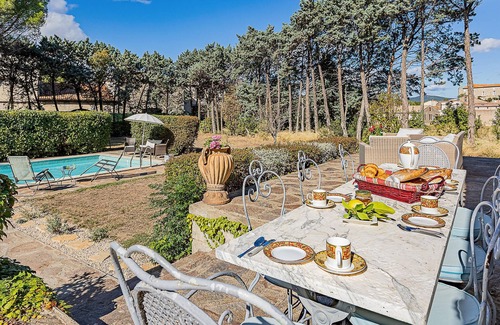 Spend a holiday with the whole family in this charming house in Laurens. The stylish rooms invite you to relax after an active day in the beautiful area. The house offers plenty of space and one bedroom has its own bathroom. Start your morning with a refreshing dip in the pool before gathering in the living room or on the terrace for a delicious breakfast. Later, enjoy sunny hours by the pool on the comfortable loungers or choose a shady spot under the large trees. There is a small apartment in the neighbouring building with space for two guests if you want a little more privacy. Summer evenings are best spent on one of the terraces, where you can prepare delicious local produce in the outdoor kitchen.