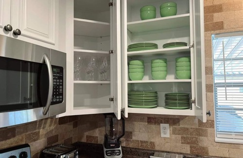 A chef’s dream with stainless steel appliances, a coffee maker, and everything you need for cooking. The open-concept dining area is perfect for family meals or game nights.
