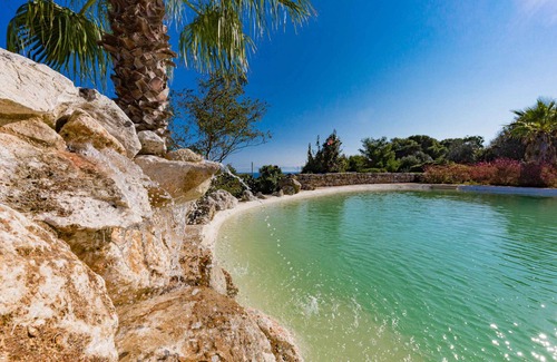 A superb villa with stunning views of the Adriatic Sea, this elegant property is built on one level and has a beautiful terrace overlooking the sea.The villa can accommodate up to eight guests very comfortably. All four bedrooms (out of which one has a separate access from the side of the building) have double beds, en suite bathrooms and air conditioning. With its privacy and modern comforts plus a magnificent swimming pool, this villa is an excellent place to relax.Carefully selected design pieces, iconic furniture and plush seating facing the swimming pool and the sea make the living room welcoming and stylish. The living room also has a cosy fireplace and a satellite TV. A separate kitchen offers views of the surrounding garden thanks to its wide doors facing the pool area. The fully equipped kitchen includes a dishwasher, large fridge and modern stainless-steel appliances.The outside seating areas are ideal for enjoying company, relaxing or some private time alone. There is a large, round swimming pool with a waterfall that offers both privacy and comfort. The pool is open the whole year, even in winter (the water is not heated). The outside area features sunbeds, chairs, a hammock, an outdoor shower and a barbecue area. Near theswimming pool is a canopied area with a table, perfect for enjoying delicious al fresco meals and savouring locally caught fish.This magnificent and well-equipped villa, just a few minutes from Santa Maria di Leuca offers plenty of relaxation opportunities and it great for those guests looking to spend quality time together. For those looking to enjoy the spectacular rocky cliffs on the Adriatic coast, the caves of Il Ciolo are a 5minute drive away, while the famous sandy beaches and crystal clear waters of southern Apulia are a fifteen-minute drive along the Ionian coast. Sheets, duvets and towels are not included. If you don't want to bring them with you from home, regardless of the length of your stay, you can rent them for €24 per person. Final cleaning is not included and costs €160, unless you clean yourselves before departure. Pets are NOT allowed in this property. We will ask you to pay a security deposit of €1000 before arrival. The security deposit will be refunded within 7 days after departure, if there is no damage. Electricity costs (and thus where applicable AC, hot water, heating etc.) are NOT included in the price and will be charged based on your actual consumption. The price per kWh charged to guests was €0,45 on 23/10/2024, when this text was last updated, but as prices are fluctuating a lot, your actual price per kWh will be communicated a few days before your arrival based on the current market price.We decided not to include electricity costs in the rent in order to: a) keep our rental prices stable despite inflation and b) incentivate our guests to use electricity responsibly, helping us to reach our sustainability goals. Thank you for your understanding. ABOUT USWe're a team of holiday enthusiasts with diverse backgrounds based between Italy and Switzerland. 🇨🇭Our mission is to find the most unique holiday homes, refurbish them and make them available to people like you, who want to live the authentic Italian experience at a high (Swiss!) quality, without spending a fortune By booking this accommodation, you accept that:- We are obliged by law to verify the identity of all our guests. We will therefore ask you to upload copies of your IDs on our (secure) website to verify your identity before handing out the key code for the accommodation. Your personal data is treated in full compliance with EU data protection laws.- Also, we are obliged to sign a rental agreement with our guests (one person per group). This will be done digitally and requires just a few seconds on your side. You can find a template of the rental agreement on our website.- Parties, gatherings, events or loud music are not allowed at this property unless explicitly authorised beforehand by us in writing.- In case the local municipality charges a tourist tax, we will ask you to pay this separately to us and we will transfer it to the local authorities as required by law.
