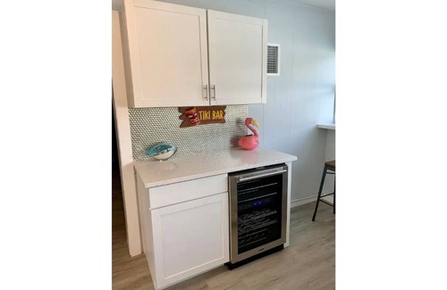 Kitchen: The kitchen is beautiful, open and bright. There is a dining table and stools for seating, as well as TV trays. We have stocked it with upgraded kitchen supplies, keurig coffee maker, crockpot, airfryer, plus all the other goodies you will need throughout your stay.