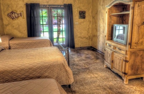 Margarita Villa is a spacious 6-bedroom, 6.5-bath lodge situated on 12 private acres in the heart of Concan, Texas. Each bedroom features its own private entrance and en-suite bathroom, offering both privacy and comfort. The main living area includes a large, open-concept living room, dining area, and fully-equipped kitchen, perfect for gathering and entertaining. Outdoors, guests can enjoy a generous covered porch, a pool, a hot tub, and a well-appointed outdoor kitchen. Experience the charm of the Texas Hill Country and the beauty of the Frio River with a stay at Margarita Villa.