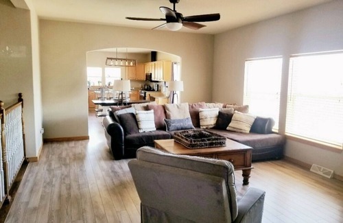 Bring the whole family to this great place with lots of room for fun. With 6 bedrooms, 2 living spaces, and 2 kitchens, you can spread out an never feel crammed! This home has a huge yard with your own hot tub and 2 patios, great for bbqs in the summer or relaxing after winter activities! The neighborhood backs up to BLM great for biking and hiking.