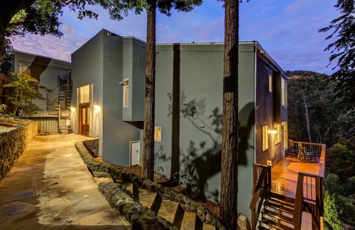 This beautiful earthy hilltop home is the epitome of an escape from the city with stunning views of nature and the bay!