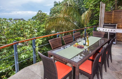 Nature's neighbors grace us with their presence, as the tree off the balcony is a playground to the diverse wildlife of Costa Rica, including three species of monkeys and the occasional sloth. Scarlet macaws and toucans paint the sky, further immersing you in this vibrant ecosystem.