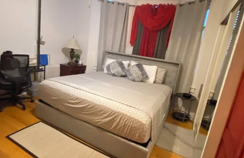 The room is designed for your privacy, with a separate entrance at the front of a two-family house. The bedroom, closet, and bathroom with Jacuzzi are all secluded from the main apartment, allowing for a peaceful stay on the first floor.
