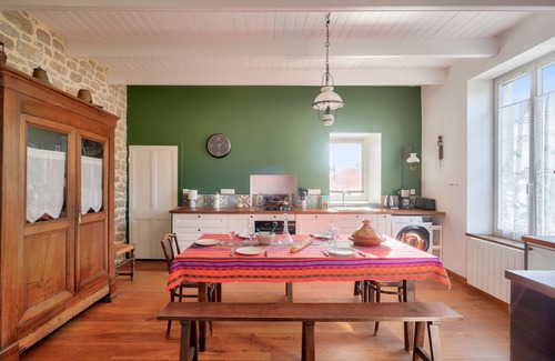 Come in and you will be welcomed by the living rooms. On the left, the cozy living room is ideal for moments of meeting and chatting. On the right, the kitchen-dining room. The kitchen is fully equipped with a mixed stovetop (gas and electricity), a refrigerator, a microwave, a microwave, an oven, a freezer, a dishwasher, a filter coffee maker, a Dolce Gusto coffee maker, a toaster, a kettle, a washing machine and a dryer. Its large elongated table will be ideal for meeting up around good meals.