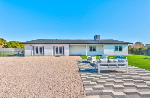 This fantastic newly remodeled single story 7-bedroom, 4.5-bathroom house house has a large backyard with patio furniture and corn hole. Located just 3 miles southwest of the Strip, it's the perfect hub for your Las Vegas stay.