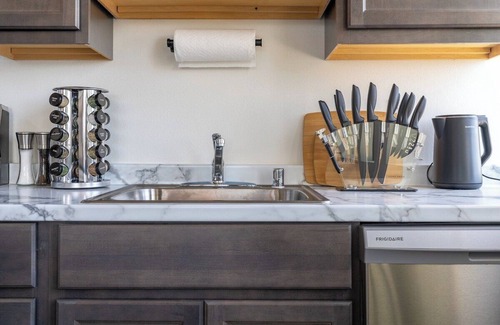The Kitchen: Open to dining so families can chat over breakfast. Fully equipped with utensils, electric stove and oven, microwave, coffee maker, toaster, and mixer.