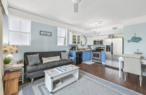 The unit is stylishly decorated in the colors of the sun and surf. The wonderfully located 2nd floor corner unit in Gulf Place has a beautiful ocean view and will make your next escape to 30A one you'll always remember. This unit is uniquely suited to families who want to explore Santa Rosa Beach, and close surroundings of Blue Mountain Beach, Watercolor, Seaside, Seacrest, Alys Beach and Rosemary Beach. We have Beach chairs available for your use. You can prepare a simple breakfast in the open kitchen each morning, walk your cup of coffee outside to the private balcony, and enjoy delightful on-site amenities that include a seasonally heated swimming pool, outdoor shower, and a hot tub all close to the beach. Also, on-site, are restaurants, coffee shops and shopping!