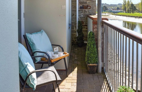 Shower Room: Cubicle Shower, Heated Towel Rail, Toilet. Electric central heating, electricity, bed linen, towels and Wi-Fi included. Welcome pack. Patio with garden furniture. Private car park, allocated for 1 car. No smoking.. Overlooking the legendary River Camel as it snakes its way to the Atlantic Ocean, this beautifully styled riverside apartment offers a home-from-home in the heart of Wadebridge, an ancient Cornish market town rich in charm and heritage. With a private balcony that captures uninterrupted views of the iconic multi-arched bridge, this ground-floor gem offers front-row seats to nature’s theatre, from the first light of dawn to serene twilight reflections.