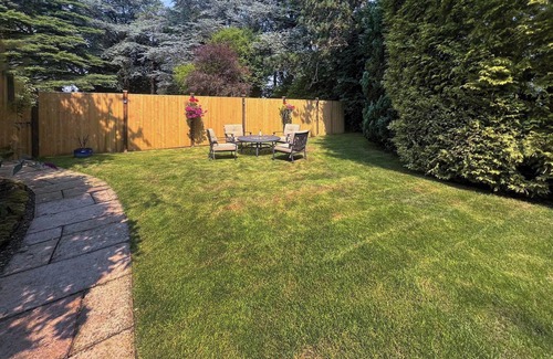 Shower Room: Cubicle Shower, Heated Towel Rail, Toilet. Electric central heating, electricity, bed linen, towels and Wi-Fi included. Garden with sitting-out area and garden furniture. Bike store. Private parking for 2 cars. No smoking.. Treetops is a cosy retreat on Rodborough Common. This first floor apartment is ideal for couples exploring the Cotswolds. The open-plan living area features a smart TV, a well-equipped kitchen/dining area. Treetops offers a spacious bedroom with a kingsize bed and en-suite facilities. There is a separate boot/utility room with laundry facilities and a toilet, and lockable storage for your bike on-site.