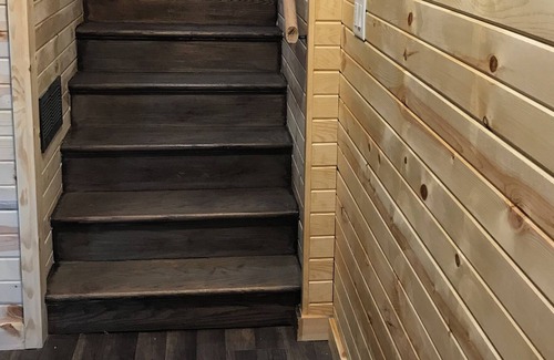 The cabin has a master bed and bath located on the lower level. It also has living room, family, dinning and kitchen on the main floor as well as common bathroom. The upper level has a loft area with twin bed and a bedroom with two full beds and a attached half bath. The laundry access can be requested.