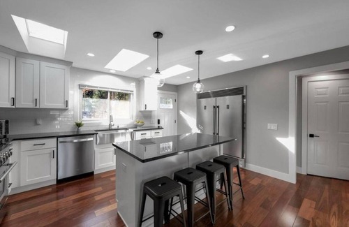This 3-bedroom house on Fish Lake outside of Hancock is perfect for your vacation. With a king bed in the master suite, bedroom 2 with a queen bed and a twin/twin bunk bed, and bedroom 3 with a double bed and double/double bunk bed, there's plenty of space for everyone. Three bathrooms with walk in showers and hair dryers ensure convenience for all guests. The property also offers WiFi, laundry, heating, AC, full gourmet kitchen and an iron. You'll feel right at home in this amazing and welcoming retreat. It's easy to see why you'll be able to unwind at our place.