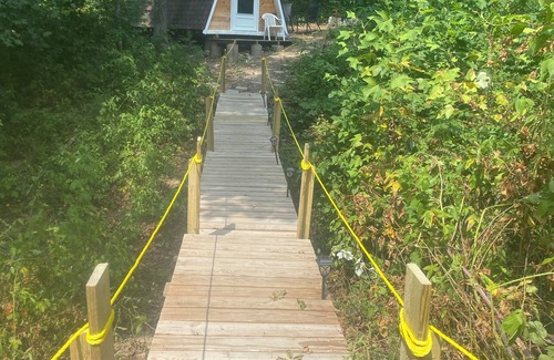 Welcome to the quietest, coziest, most private addition to our little camping area. " A-frame in the Brambles" is a 10 x16 cabin with a queen bed with memory foam mattress and basic cooking amenities provided on main floor. There is a twin mattress in the loft, accessible by ladder. Hot shower, flush toilet and kitchen sink are located at a new bathhouse provided for our guests, about 50 yards from the cabin. Potable water hydrant located at entrance to cabin. A/C and heat, for a great all season glamping experience.